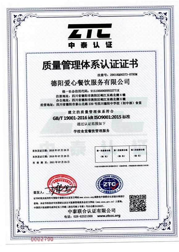 > 質(zhì)量管理體系認(rèn)證證書