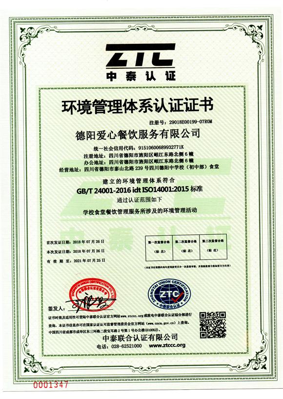 環(huán)境管理體系認(rèn)證證書